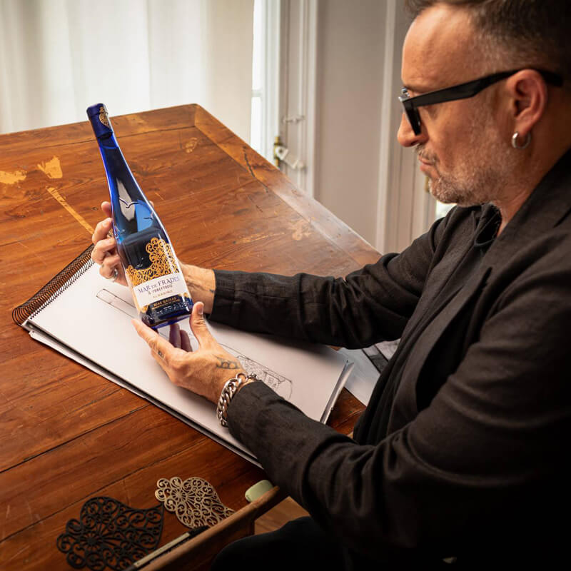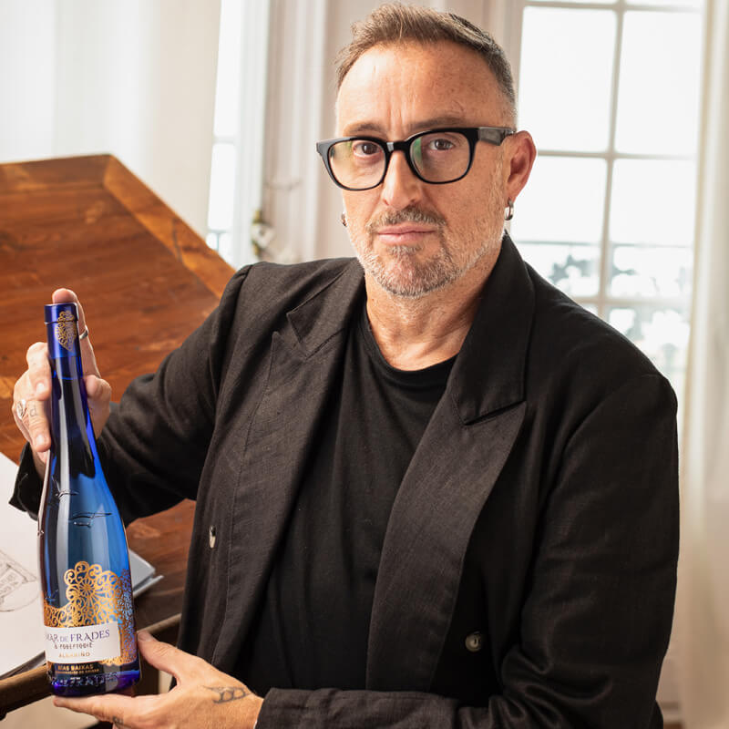 La visión del diseñador es que la botella de Mar de Frades adquiera una nueva personalidad: el latir de un estilo de vida pegado a una tradición propia, el lujo de lo auténtico.
