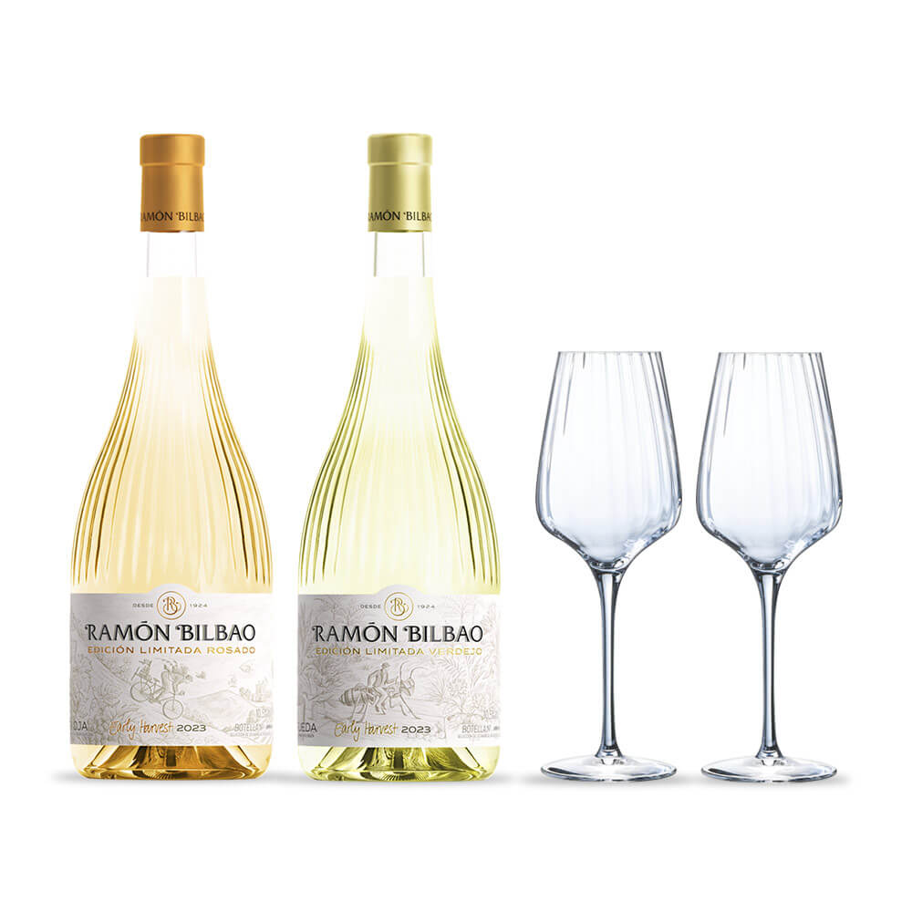 1 bot. x 0,75L de RB Ed. Limitada Early Harvest Verdejo + 1 bot. x 0,75L de RB Ed. Limitada Early Harvest Rosado + 2 copas Early Harvest.